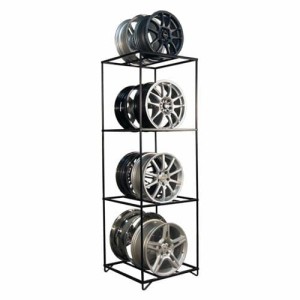 Może pomieścić do 8 felg, czyli 2 na każdej półce, każda frontem w przeciwną stronę. Felgi mogą mieć nawet 25 ”(63,5 cm) średnicy i 12” (30 cm) szerokości. Jest łatwy do przenoszenia, waży tylko 17 kg a montaż zajmuje kilka minut.