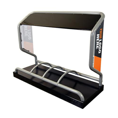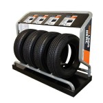 Został zaprojektowany z nowoczesnych tworzyw i pokryty jest farbą proszkową najwyższej jakości. Solidna stalowa konstrukcja i akrylowe panele informacyjne zapewniają długotrwałą żywotność. Ekspozytor mieści 4 opony i każda z nich ma oddzielne miejsce na opis katalogowy za akrylową osłoną. Oprócz panelu głównego posiada 2 panele boczne, które można personalizować, dodając logo. Regulowane przegrody ekspozytora umożliwiają układanie opon o średnicy zewnętrznej do 78,7 cm.
