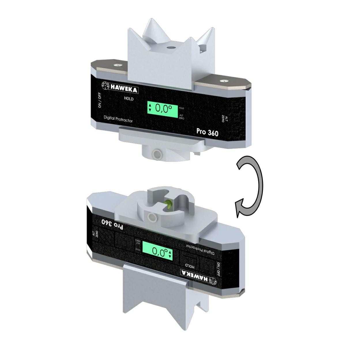 Elektroniczny pochyłomierz HAWEKA to specjalistyczny przyrząd do pomiaru wartości kątów elementów zawieszenia w pojazdach marki Mercedes-Benz w celu dokładnego ustawienia geometrii kół pojazdu. Zaprojektowany został w sposób umożliwiający niezwykle uniwersalne wykorzystanie: można go przesiwać na boki, obracać o 180 ° i ustawiać na różne sposoby z wykorzystaniem specjalnych adapterów dla poszczególnych modeli Mercedes-Benz.