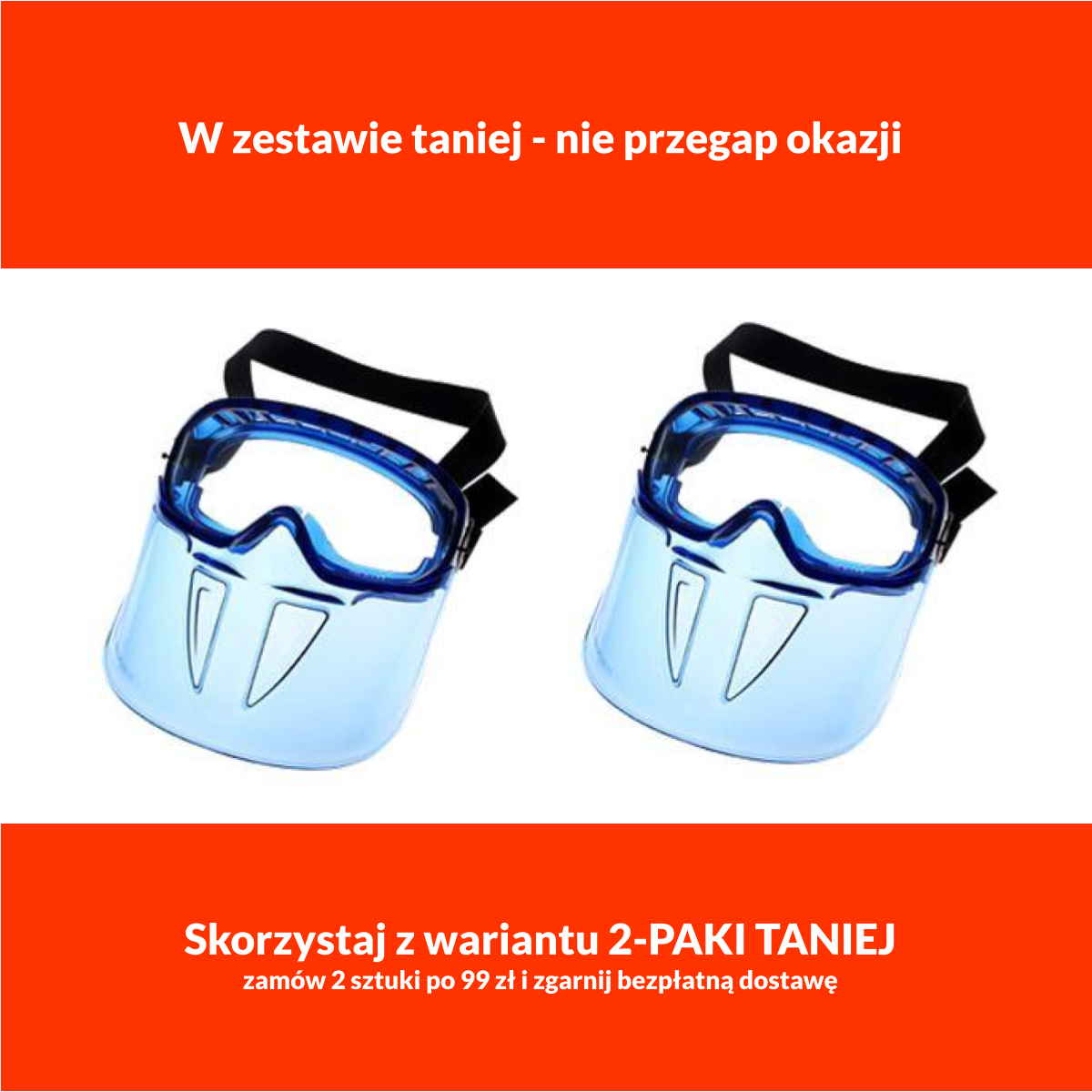 - zakrzywiony kształt osłony dostosowany jest do twarzy dla dodatkowej ochrony