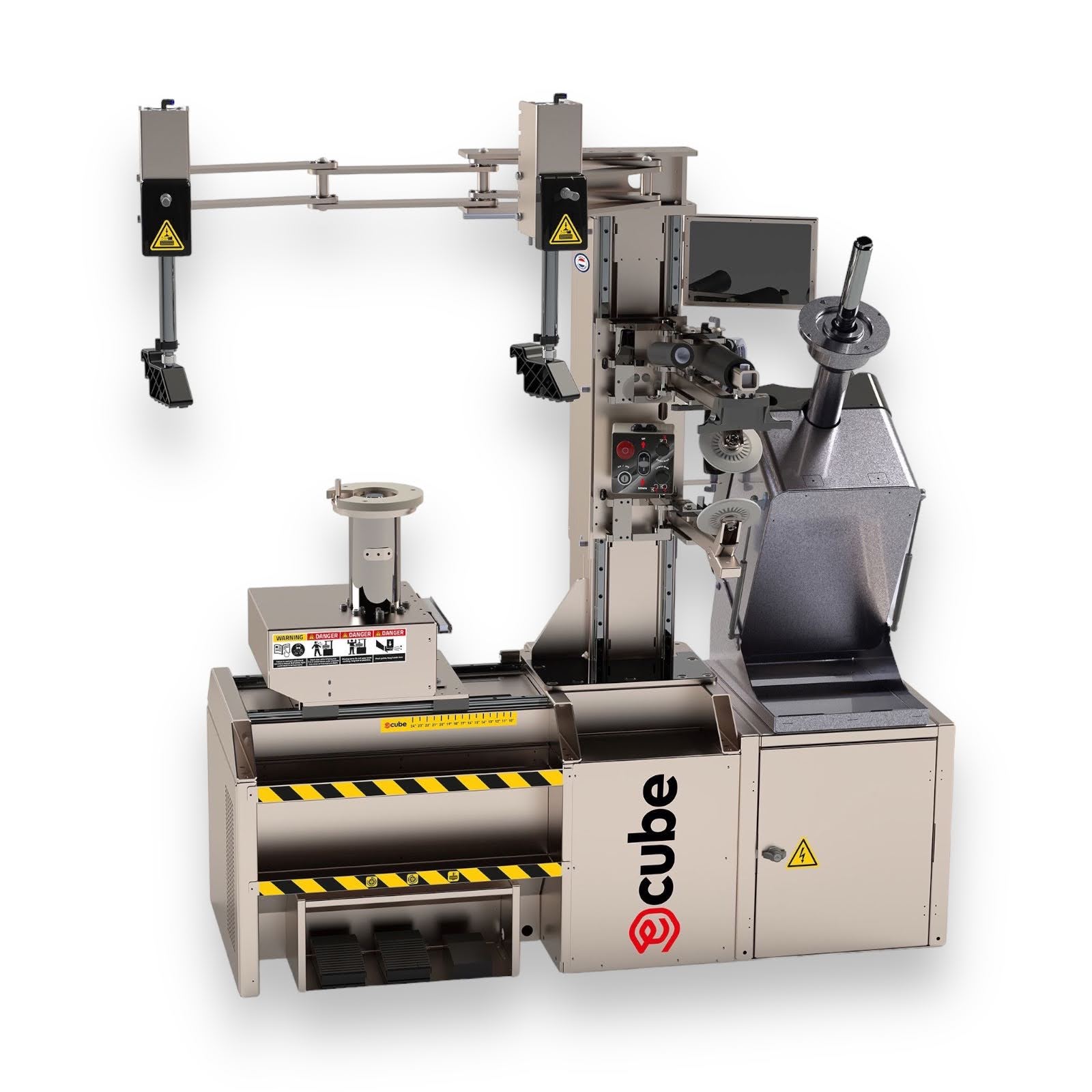 Mobilny serwis opon E-Cube All-In-One jest innowacyjnym urządzeniem przeznaczonym dla firm wykonujących usługę mobilnego montażu opon bezpośrednio u użytkownika. Urządzenie skonstruowane jest w systemie All-In-One i składa się z montażownicy, wyważarki oraz kompresora. Wyważarka umożliwia wprowadzanie pomiarów w trybie automatycznym 2D (odległość, średnica) a montażownica posiada szereg przystawek niezwykle przydatnych przy obsłudze opon niskoprofilowych i Run-Flat.