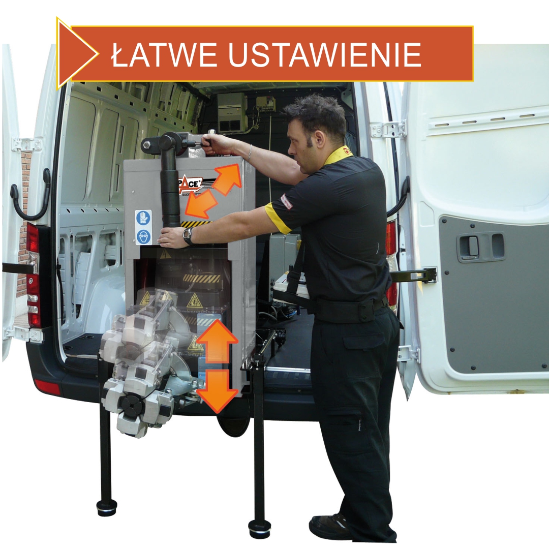 - Mobilność: Kompaktowe wymiary i łatwy transport i możliwość zabudowy na samochodzie dostawczym umożliwiają pracę w dowolnym miejscu.