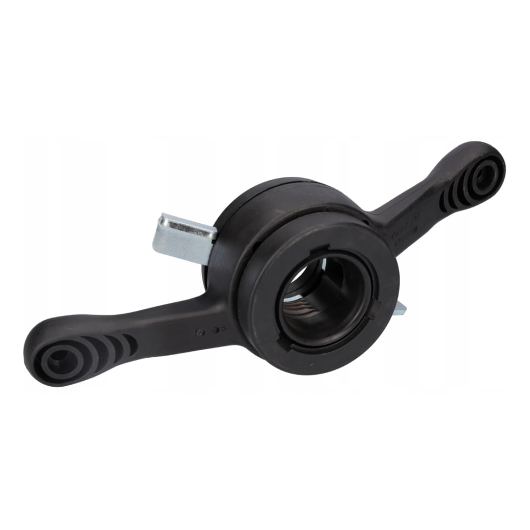 Uchwyt, wyposażony w sztywne sprężyny mocno dociskające gwint uchwytu do trzpienia wyważarki, zapobiegając w ten sposób samoczynnemu zwolnieniu się zacisku podczas procesu wyważania kół. Prosty w montażu, o konstrukcji motylkowej z dwiema wkładkami gwintowanymi i blokadą sprężynową. To najbardziej popularna i jedna z najlepszych nakrętek szybkomocujących do wyważarek.