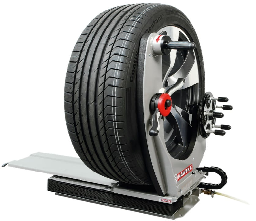 W warsztacie ważna jest szybkość, wydajność i niezbędne środki bezpieczeństwa. Firma HAWEKA opracowała podnośnik, który zapewnia najlepsze możliwe wsparcie we wszystkich tych obszarach podczas centrowania koła na wyważarce. Podnośnik jest podnoszony za pomocą napędu pneumatycznego i ponownie opuszczany automatycznie za pomocą obrotowego uchwytu sterującego.