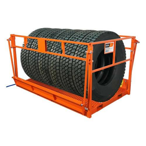 Pomost roboczy na widły do obsługi opon firmy Martins jest specjalnie zaprojektowany, aby przemieszczać na wysokości opony do samochodów ciężarowych, autobusów, OTR i innych ciężkich pojazdów. pomost zapewnia bezpieczny sposób składania i zdejmowania opon. Klatka ta została zatwierdzona pod kątem bezpieczeństwa i higieny pracy, zapewnia pracownikom środowisko pracy wolne od zagrożeń. Posiada bramy zabezpieczające pracownika. który pracuje na wysokości. Prosty mechanizm umożliwia podnoszenie bram wzdłuż boków w dwóch sekcjach. Gdy bramy są podniesione, rampa obniża się, aby zapewnić łatwy dostęp do opon.