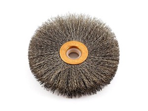 Szczotka druciana przeznaczona do usuwania gumy otaczającej stalowe kable opony.