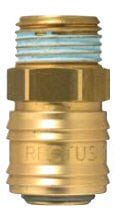 Szybkozłączka RECTUS o zastosowaniu uniwersalnym, wykonana z mosiądzu. Zamknięty korpus zewnętrzny zabezpiecza części wewnętrzne przed zanieczyszczeniami. Poprzez zastosowanie hartowanych kołków ryglujących możliwa jest współpraca z narzędziami wyposażonymi we wtyczki stalowe.