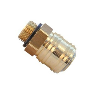 Szybkozłączka RECTUS o zastosowaniu uniwersalnym, wykonana z mosiądzu. Zamknięty korpus zewnętrzny zabezpiecza części wewnętrzne przed zanieczyszczeniami. Poprzez zastosowanie hartowanych kołków ryglujących możliwa jest współpraca z narzędziami wyposażonymi we wtyczki stalowe.