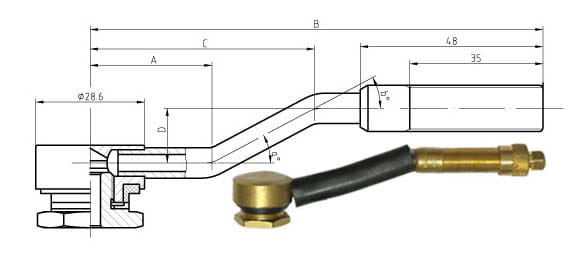 Zawór skręcany, gięty HD VULC TRJ 690 stosowany do kół bezdętkowych maszyn ziemnych oraz przemysłowych.