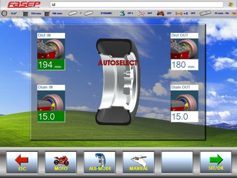 System SONAR DT umożliwia automatyczne wprowadzenie parametrów koła bez wysuwania przyrządów pomiarowych (odległość+średnica+szerokość) zarówno dla felg stalowych jak i aluminiowych. Funkcja ta umożliwia również automatyczne rozpoznawanie trybów wyważania.