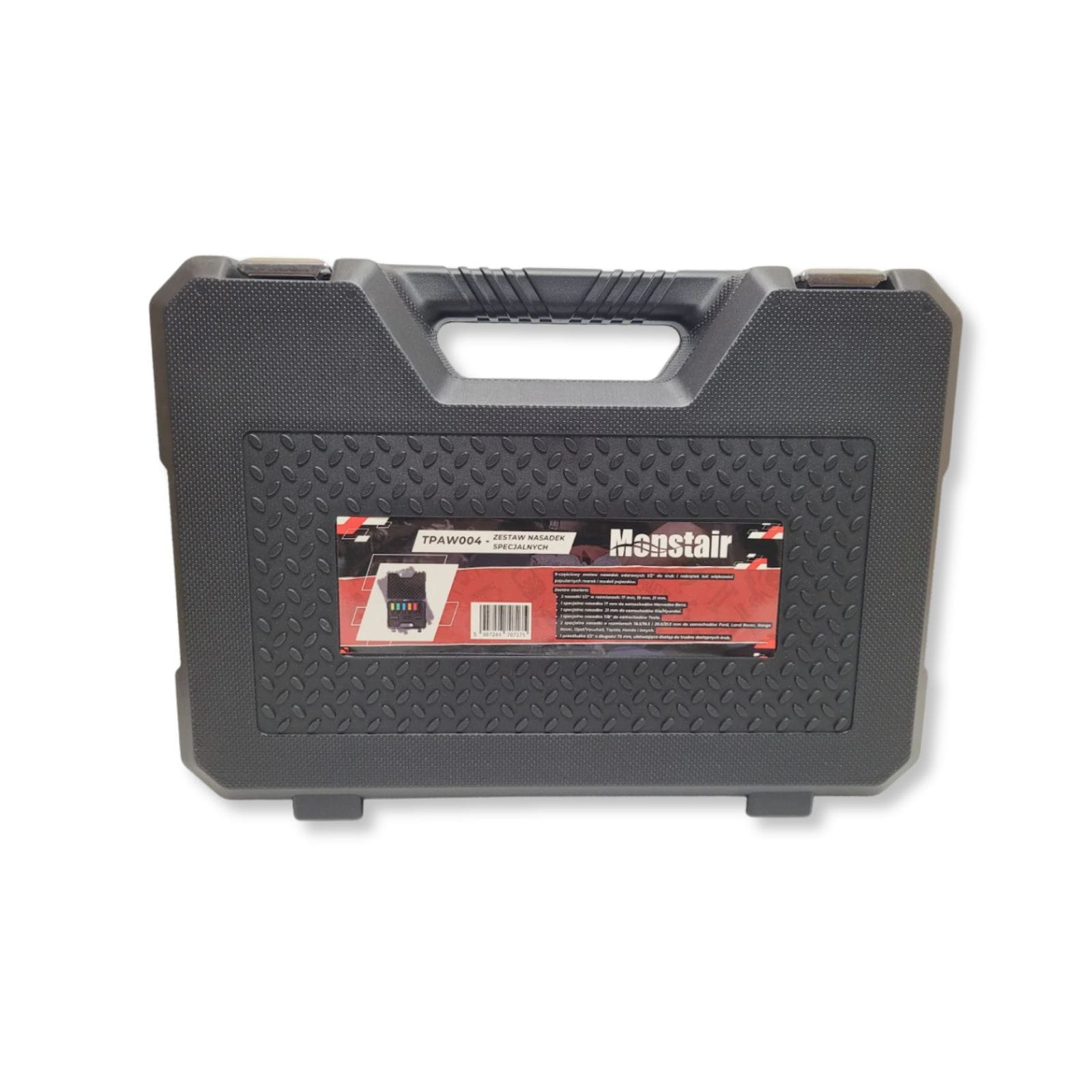 - 2 specjalne nasadki profilowane o rozmiarach 18.5/19.5 i 20.5/21.5 mm do samochodów marki Ford, Land Rover, Range Rover, Opel/Vauxhall, Toyota, Honda i innych